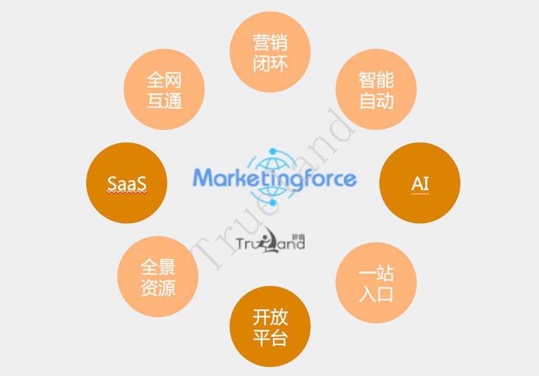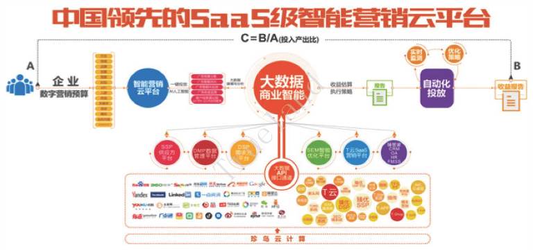 趙旭隆緊接著介紹,Salesforce是一家目前已經(jīng)市值1200億美金的SaaS級企業(yè)服務(wù)平臺,他們的核心是圍繞“銷售力”向企業(yè)賦能;而珍島是圍繞智能數(shù)字營銷的“營銷力”面向企業(yè)賦能,珍島稱之為“Marketingforce”。在這個SaaS級企業(yè)服務(wù)領(lǐng)域,珍島已經(jīng)走在市場前列,目前累計T云服務(wù)企業(yè)用戶已達6萬余家,平臺已達到日均新增IP流量已超1500萬,企業(yè)商情信息發(fā)布超100億次條,信息曝光累計超3600億次,累計新增IP流量超100億的運營數(shù)據(jù)規(guī)模。