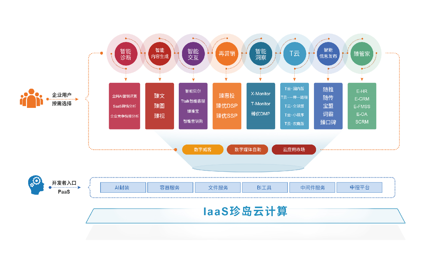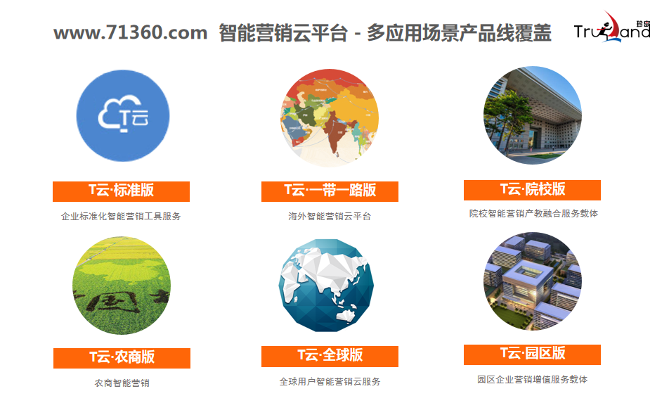 “應(yīng)用即場(chǎng)景,場(chǎng)景即多元。”優(yōu)秀的企業(yè)級(jí)云服務(wù)平臺(tái),必須具備強(qiáng)大的“多場(chǎng)景應(yīng)用延展能力”,Marketingforce的開放性,面向不同的產(chǎn)業(yè)、行業(yè)、業(yè)務(wù)領(lǐng)域的中小微企業(yè)集群,提供了多元化的AI SaaS智能營(yíng)銷工具服務(wù)。目前珍島T云版圖已經(jīng)涵蓋了T云(標(biāo)準(zhǔn)版)、T云(一帶一路版)、T云(院校版),T云(農(nóng)商版)、T云(全球版)、T云(園區(qū)版)等不同的應(yīng)用方向,并得到了垂直領(lǐng)域企業(yè)客群的一致肯定。