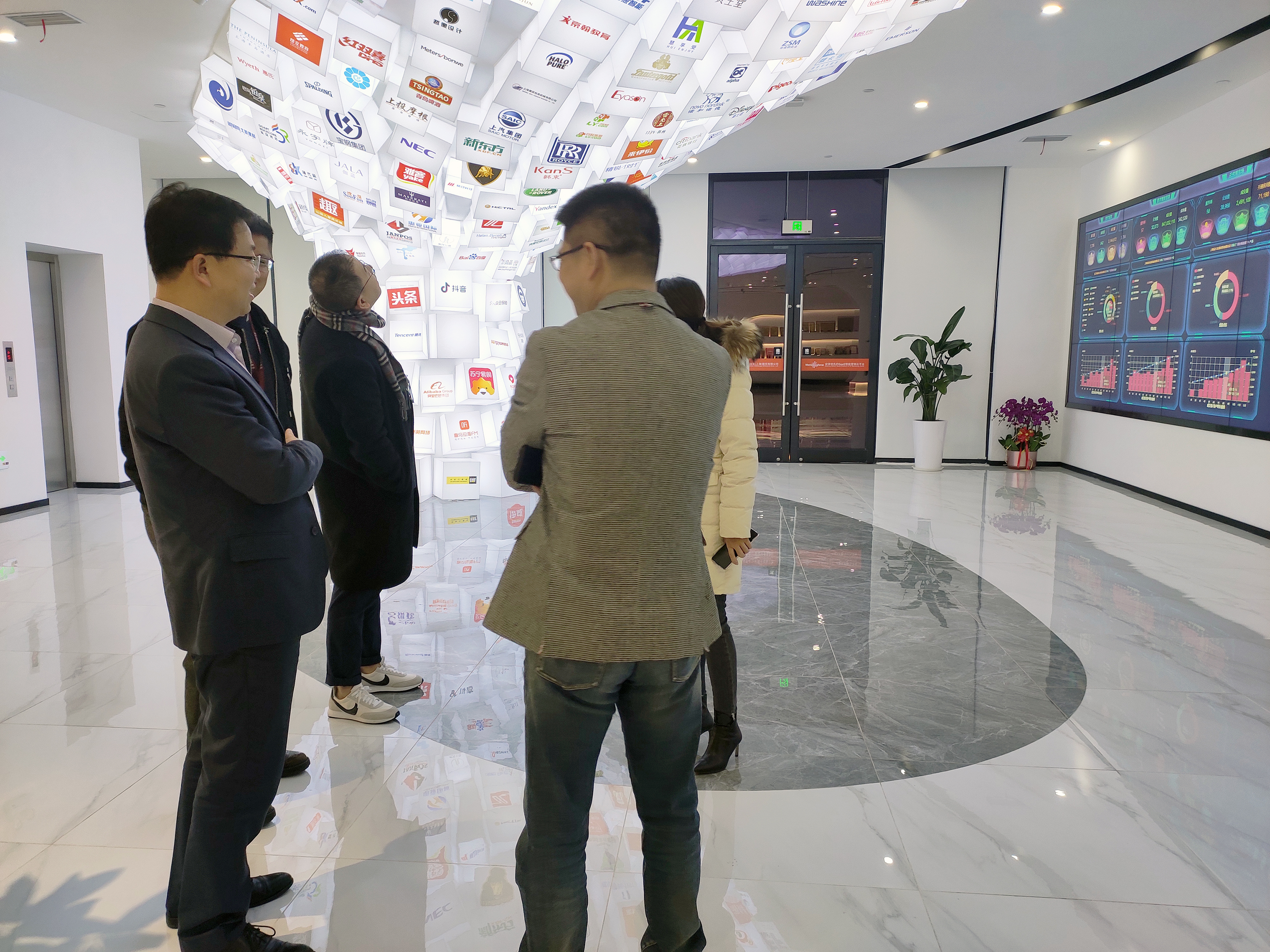 趙旭隆陪同市北高新集團(tuán)羅嵐書記一行來到珍島中心一樓大廳,首先看到珍島“客戶樹”和“71360大數(shù)據(jù)展示中心大屏”。趙旭隆詳細(xì)介紹到:“珍島Marketingforce實(shí)時數(shù)據(jù)看板反映了各產(chǎn)業(yè)集群的企業(yè)用戶群體在全球化數(shù)字營銷領(lǐng)域的實(shí)踐能力現(xiàn)狀。時刻變動的營銷數(shù)據(jù),能夠讓我們清晰了解到不同類型、不同區(qū)域企業(yè)客群在數(shù)字營銷信息發(fā)布、曝光、流量、轉(zhuǎn)化交互、訂單成交完整漏斗演變以及企業(yè)營銷能力的成長過程?!?/p>