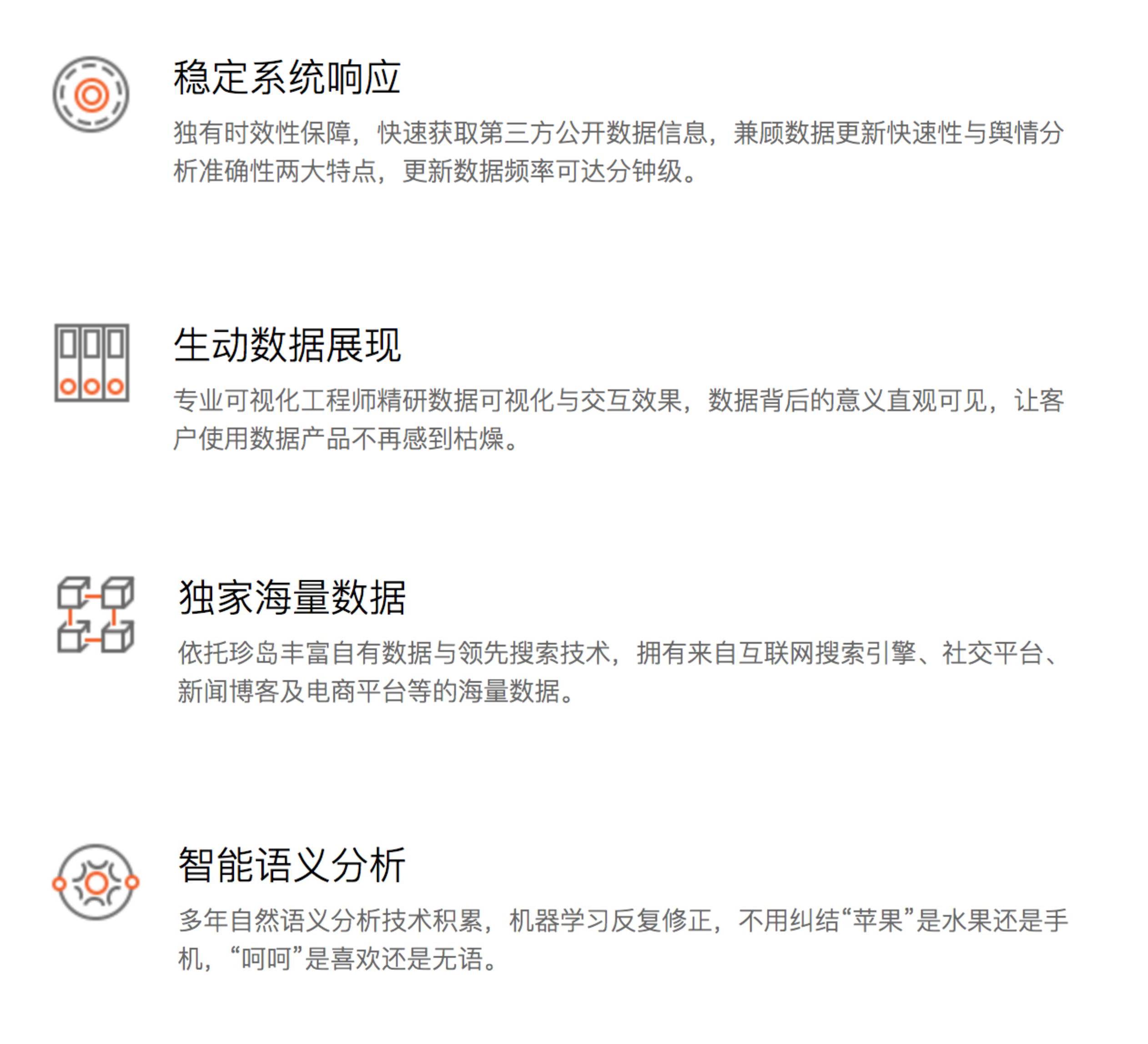 珍島實時網(wǎng)絡(luò)輿情智能檢測云平臺,依托云計算、大數(shù)據(jù)技術(shù),通過對網(wǎng)絡(luò)信息的跨平臺自動采集、清洗和智能語義多維度分析,實現(xiàn)全網(wǎng)相關(guān)熱點輿情的實時監(jiān)測管理,為各級輿情分析應(yīng)用部門提供全面的輿情動態(tài)信息數(shù)據(jù)服務(wù)。