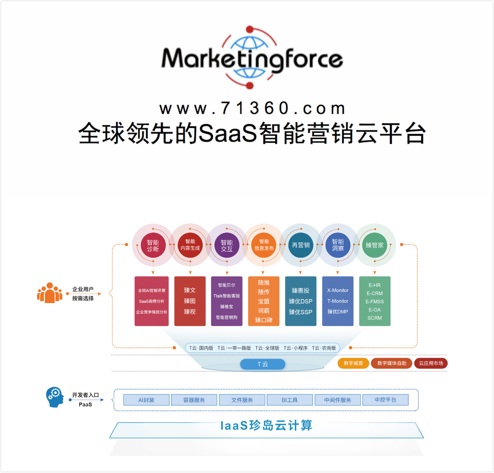 在珍島會(huì)客廳,于勇區(qū)長(zhǎng)詳細(xì)了解企業(yè)業(yè)務(wù)發(fā)展情況,趙旭隆介紹:“珍島目前的核心商業(yè)定位是打造全球領(lǐng)先的Marketingforce平臺(tái),為全球中小微企業(yè)進(jìn)行營(yíng)銷力賦能。T云系列產(chǎn)品是Marketingforce在企業(yè)服務(wù)市場(chǎng)終端卓有成效的應(yīng)用工具,其意義在于改變傳統(tǒng)營(yíng)銷市場(chǎng)服務(wù)格局,依托云計(jì)算、數(shù)據(jù)中臺(tái)核心技術(shù)我們可以輕松幫助企業(yè)將營(yíng)銷服務(wù)推進(jìn)至平臺(tái)化、軟件化、智能化、生態(tài)化。”