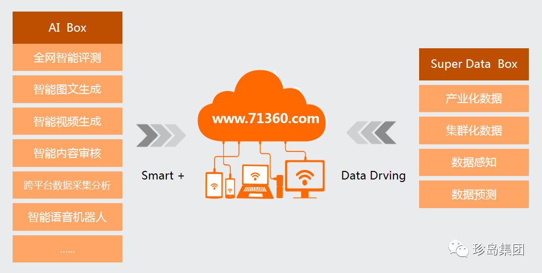 珍島智能營銷云平臺構建強大PaaS數(shù)據(jù)中臺,“AI - Box容器”已封裝智能全網(wǎng)評測、智能內容生成、跨平臺數(shù)據(jù)采集及分析、智能語音機器人等核心智能營銷AI技術,同時,“AI Box”面向第三方開放,使得AI應用在珍島PaaS平臺具備極強的“衍生及成長力”,加速珍島智能營銷云平臺的“Smart+”及“Marketingforce”模型能級提升。