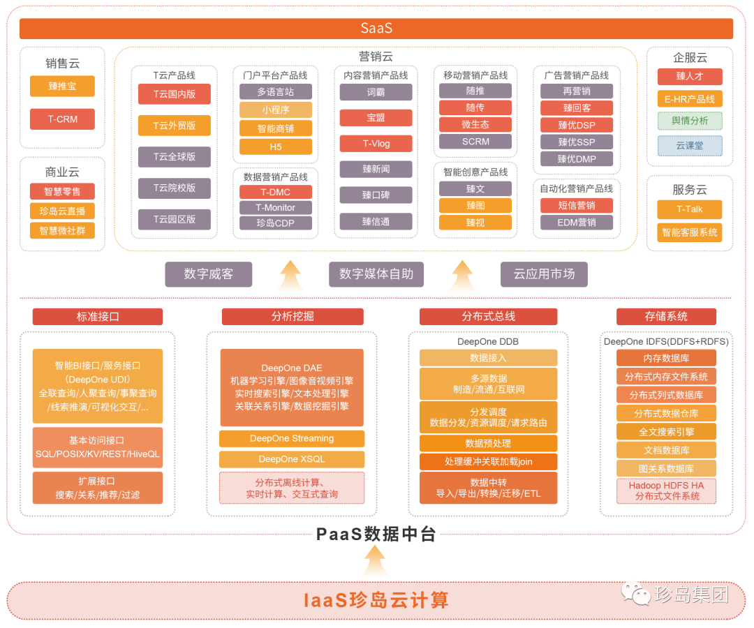 珍島集團(tuán),秉承“整合數(shù)字資源,技術(shù)驅(qū)動(dòng)營(yíng)銷(xiāo)”的核心運(yùn)營(yíng)理念,聚焦Marketingforce(營(yíng)銷(xiāo)力賦能),打造全球領(lǐng)先的SaaS智能營(yíng)銷(xiāo)云平臺(tái),面向全球企業(yè)提供一站式(營(yíng)銷(xiāo)前、營(yíng)銷(xiāo)中、營(yíng)銷(xiāo)后、企業(yè)信息化等)智能營(yíng)銷(xiāo)軟件工具(AI-SaaS)。現(xiàn)已形成IaaS(云計(jì)算)、PaaS、All