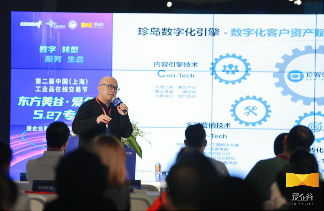 生態(tài)”第二屆中國(guó)(上海)工業(yè)品在線交易節(jié),東方美谷·愛(ài)企谷527專(zhuān)場(chǎng)暨企業(yè)數(shù)字化轉(zhuǎn)型高峰論壇活動(dòng)在愛(ài)企谷園區(qū)內(nèi)舉行。珍島集團(tuán)副總裁張蓬應(yīng)邀參會(huì),并發(fā)表《珍島智能營(yíng)銷(xiāo)云