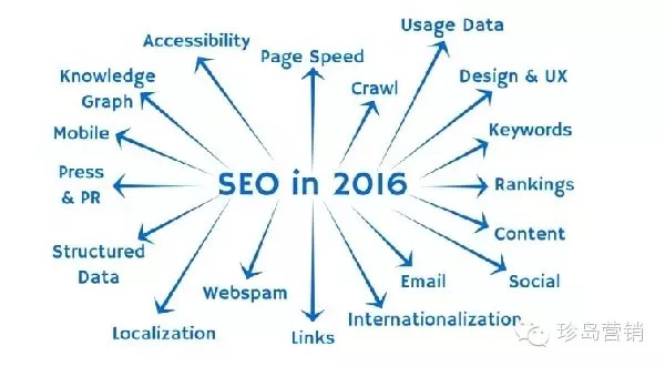今時今日的SEO已不僅僅是一個單獨的概念,因為如今社交媒體、公共關(guān)系、線下營銷甚至郵件營銷等營銷策略都直接或間接地對SEO產(chǎn)生了巨大影響。具體來說,影響SEO效果的因子包括品牌詞,引文搜索,搜索相關(guān)度,數(shù)據(jù)使用,內(nèi)容和鏈接等。