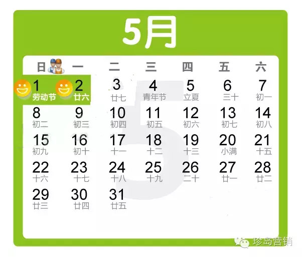 勞動節(jié):5月1日放假,5月2日補休