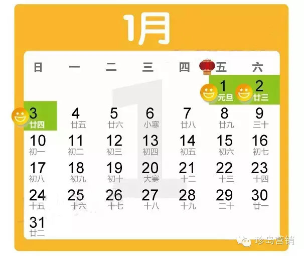 元旦:1月1日放假,與周末連休