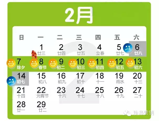 春節(jié):2月7日至13日放假