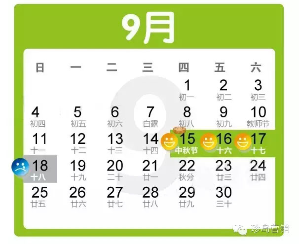 中秋節(jié):9月15日至17日放假