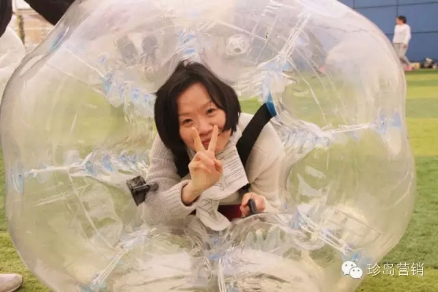 接下來是嗨翻天的滾人游戲,兩兩分組,一人裝進氣球里,隊友將其推到指定地點后,雙方交換位置,再原路返回。各隊均表現出了滿滿的你贏我陪你君臨天下,你輸我陪你東山再起的隊友情啊~瞧這像風一樣的女紙,也是蠻拼的!!