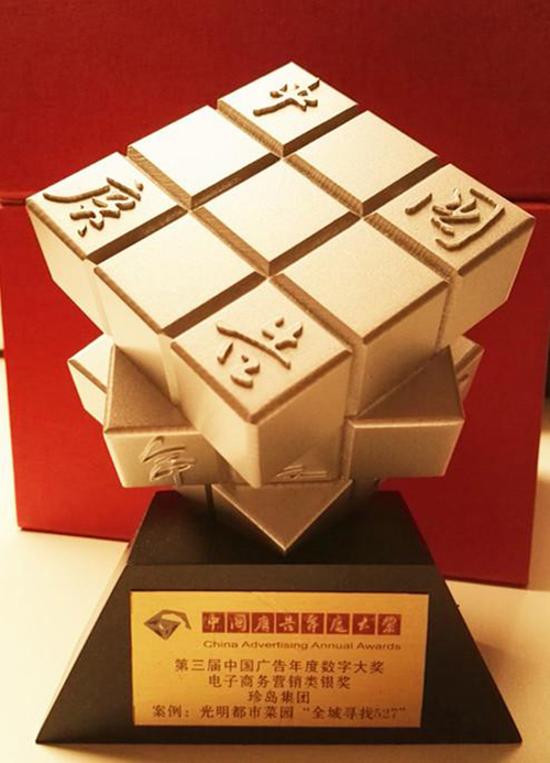 珍島集團報送的“光明都市菜園——全城尋找527”案例榮獲技術(shù)整合組-電子商務(wù)類銀獎,這是該案例繼TMA效果類金獎、影響中國2015年度營銷效果金獎、中國CMO俱樂部-Forrester2015年度數(shù)字營銷榜單、金網(wǎng)獎、梅花獎、金蜜蜂、金觸點等獎項后斬獲的又一業(yè)內(nèi)大獎,從創(chuàng)意、內(nèi)容、技術(shù)、效果等多維度認(rèn)證了案例的成功,堪稱營銷經(jīng)典。