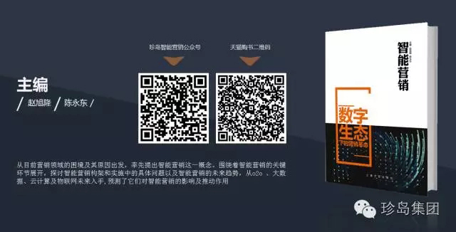 后,張蓬為現(xiàn)場朋友推薦介紹了由珍島集團(tuán)創(chuàng)始人·總裁趙旭隆主編的《智能營銷——數(shù)字生態(tài)下的營銷革命》一書。該書從目前營銷領(lǐng)域的困境及其原因出發(fā),率先提出智能營銷這一概念。圍繞著智能營銷的關(guān)鍵環(huán)節(jié)展開,探討智能營銷構(gòu)架和實(shí)施中的具體問題以及智能營銷的未來趨勢,從O2O 、大數(shù)據(jù)、云計算物聯(lián)網(wǎng)的未來入手,預(yù)測了它們對智能營銷的影響及推動作用。(如上圖所示)