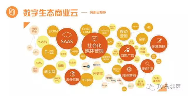 目前,珍島集團(tuán)的三大核心業(yè)務(wù)體系包含云計(jì)算SaaS平臺(tái)產(chǎn)品(T云)、大數(shù)據(jù)精準(zhǔn)營(yíng)銷(xiāo)服務(wù)以及數(shù)字營(yíng)銷(xiāo)全案服務(wù)。張蓬指出:“目前珍島所構(gòu)建的數(shù)字商業(yè)云體系,能夠系統(tǒng)化、結(jié)構(gòu)化、科學(xué)的幫助不同類型的企業(yè)解決互聯(lián)網(wǎng)轉(zhuǎn)型過(guò)程中的平臺(tái)構(gòu)建及智能數(shù)字營(yíng)銷(xiāo)需求,同時(shí),www.71360.com數(shù)字生態(tài)服務(wù)平臺(tái)也將成為未來(lái)所有營(yíng)銷(xiāo)人會(huì)樂(lè)于使用的工作桌面。
