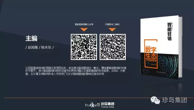 演講的時間是有限的,很多觀點無法現場盡情分享,所以在演講的后,張蓬推薦了《智能營銷——數字生態(tài)下的營銷革命》一書。該書是由珍島集團創(chuàng)始人·總裁趙旭隆先生主編,在業(yè)內率先將“智能營銷”概念進行系統(tǒng)化的梳理,并詳細介紹了營銷智能化發(fā)展的一部工具書。從營銷行業(yè)的痛點出發(fā),闡述了如何借助云計算、大數據、物聯網、O2O等先進技術和理念,解決營銷中的頑疾和困惑,將重壓下的營銷人解放出來,真正投入到創(chuàng)意中,從而加速營銷的智能化變革。