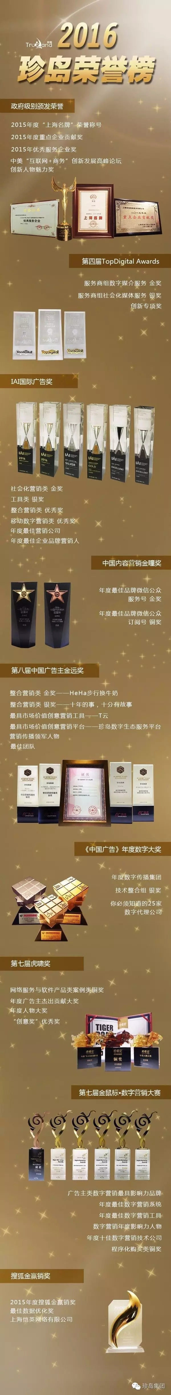 查看詳情2016年已悄然過去一半,回顧上半年 ,珍島集團(tuán)收獲了國內(nèi)數(shù)字營銷界頂級賽事的多個獎項。作為數(shù)字營銷行業(yè)的先行者,珍島得到了業(yè)內(nèi)專家從技術(shù)、產(chǎn)品、內(nèi)容、創(chuàng)意、效果等多維度、的評估及認(rèn)可。