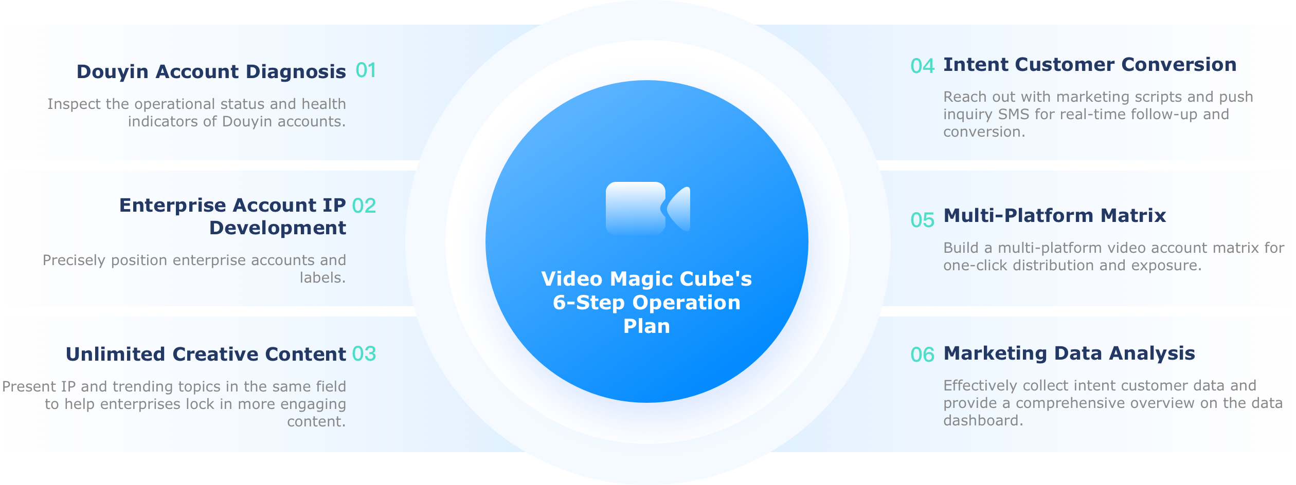 An all-in-one short video marketing tool that integrates enterprise short video account positioning, video editing and production, exposure and conversion, and marketing fission.