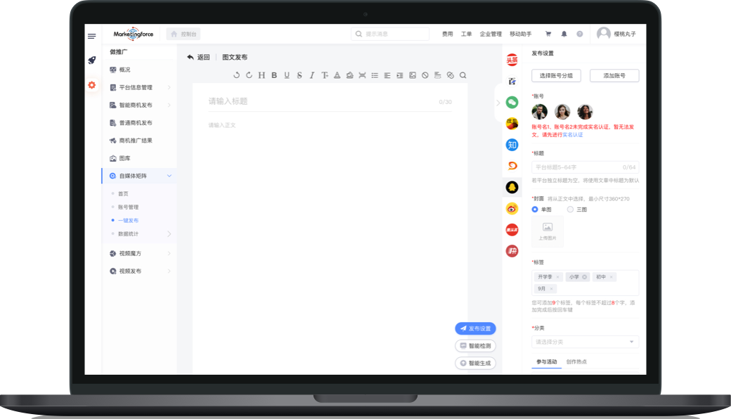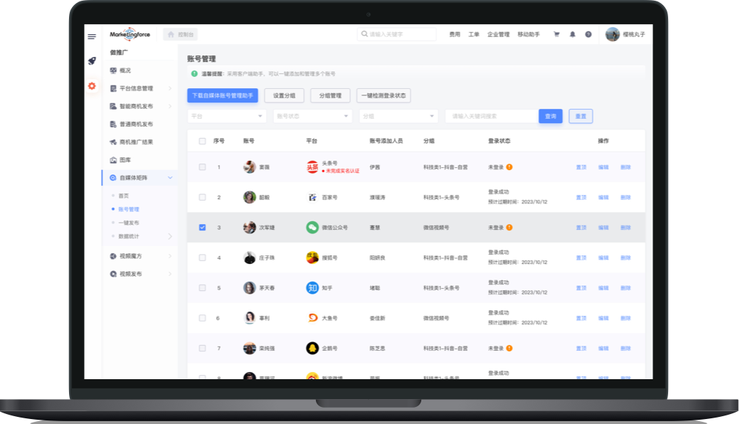 Simultaneously manage multiple platforms and accounts to ensure brand consistency, plan multi-platform marketing value reasonably, and meet the business needs of different industries and scenarios.