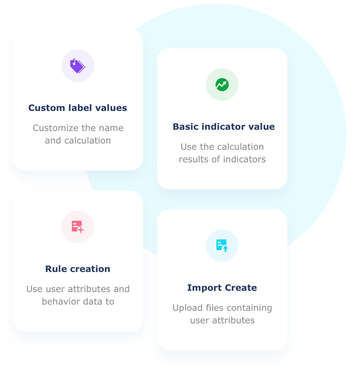 Supports various one-stop tagging methods, efficiently completing a 360-degree user tagging system. The tagging creation supports 11 modes.